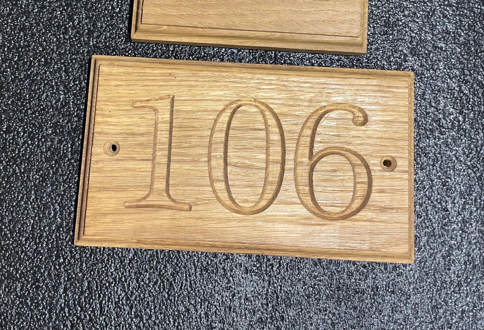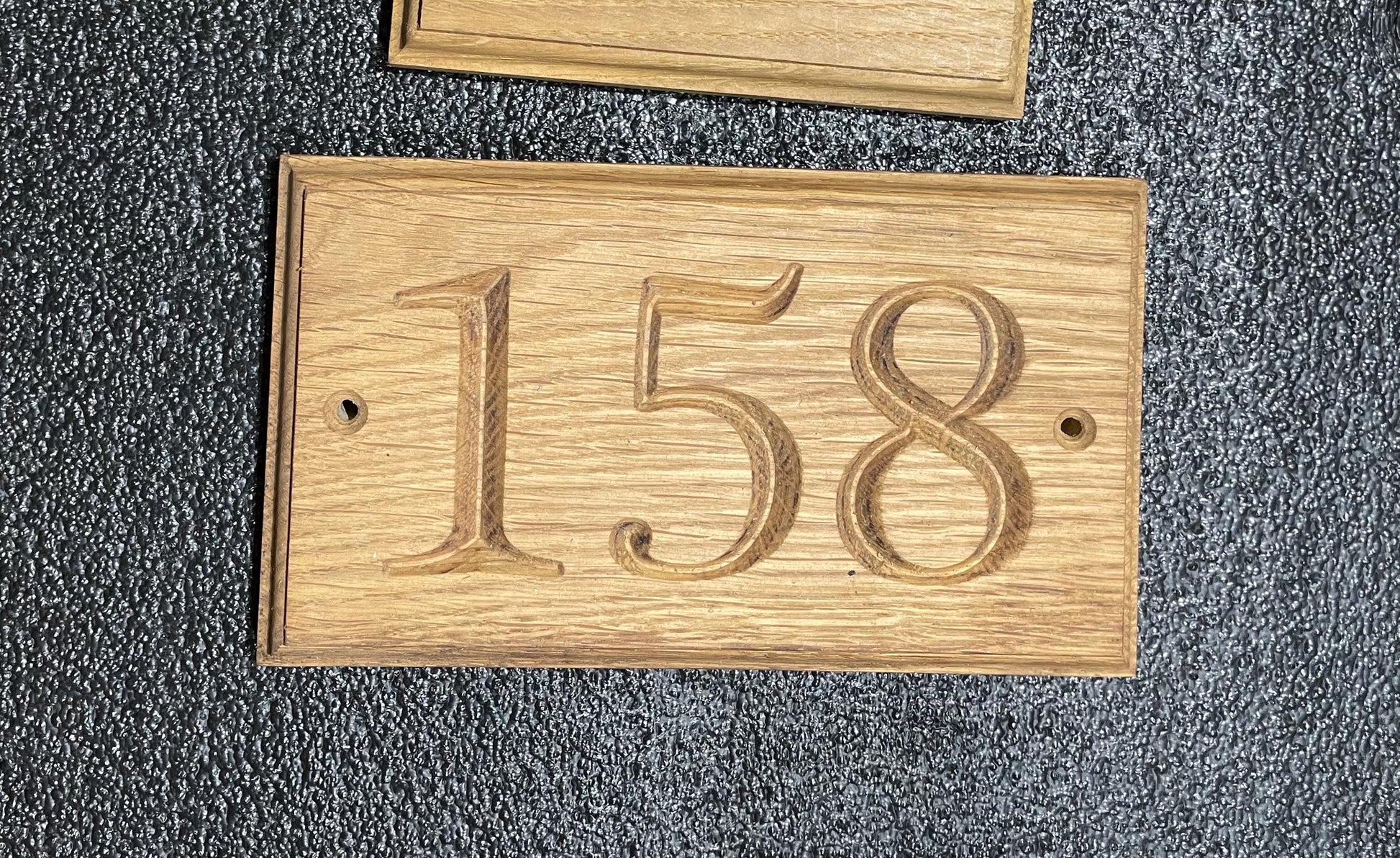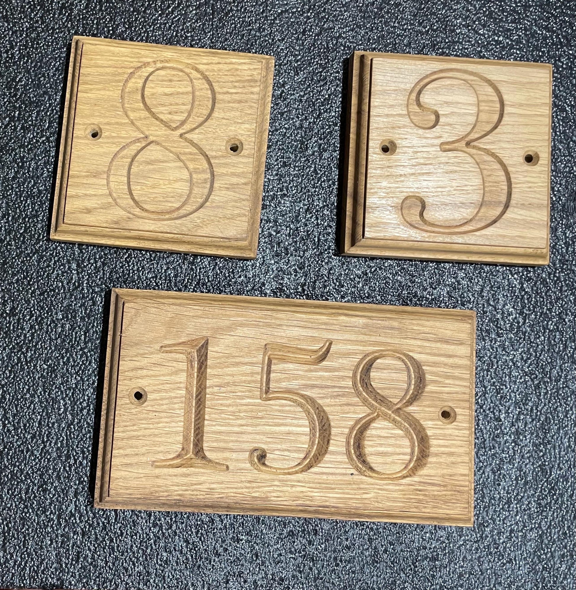 Solid Oak Door number. Available in single , double or triple number. Price will very on amount of numbers to allow for timber sizes to keep numbers same size from single double and triples. If you need more numbers or wording on your Door signs please contact us and we can sort out a design and layout of your requires.