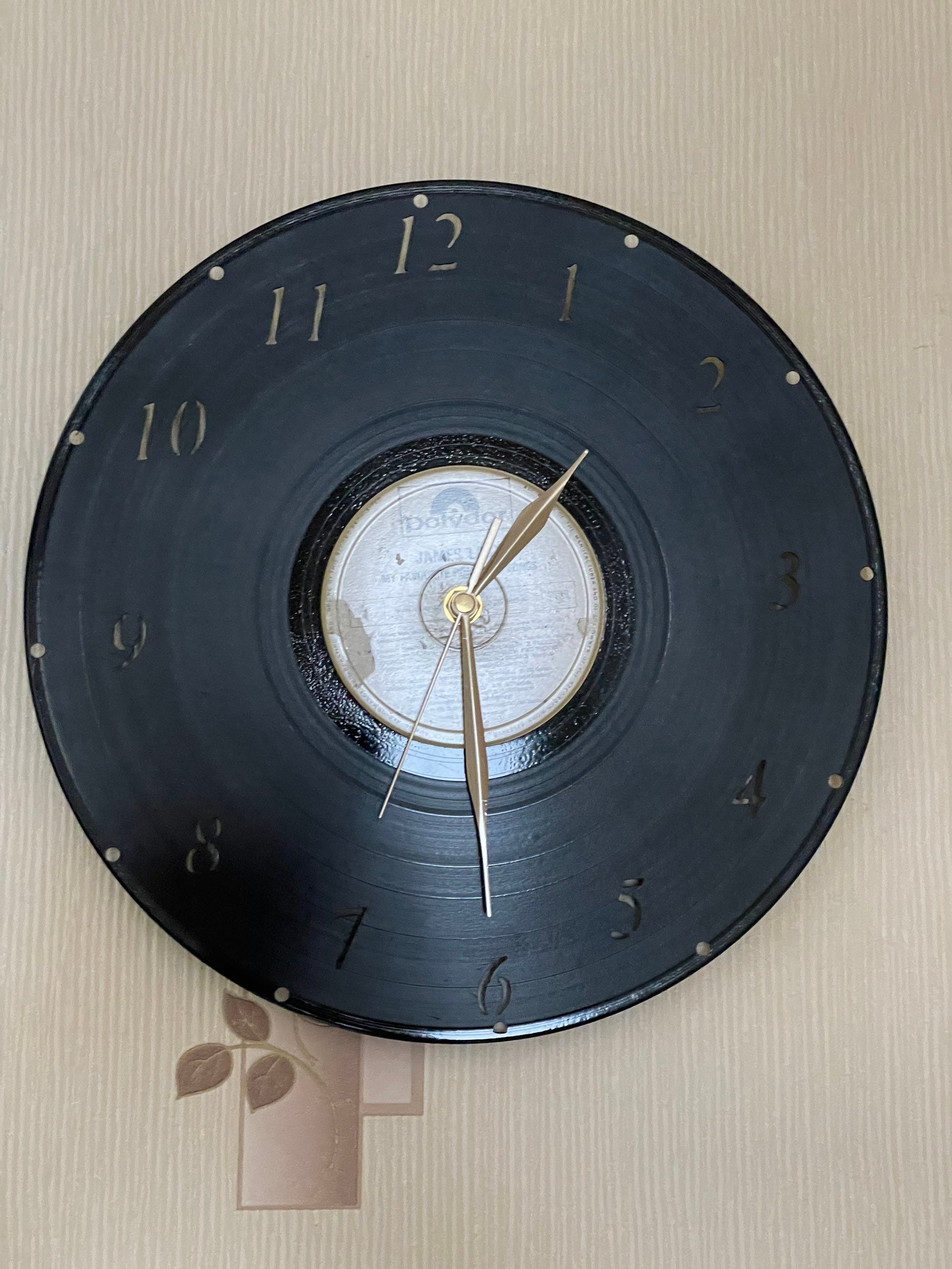 Old LP/Vinyl/records cut with images and made into Clocks. With or without Time dots, choice from: