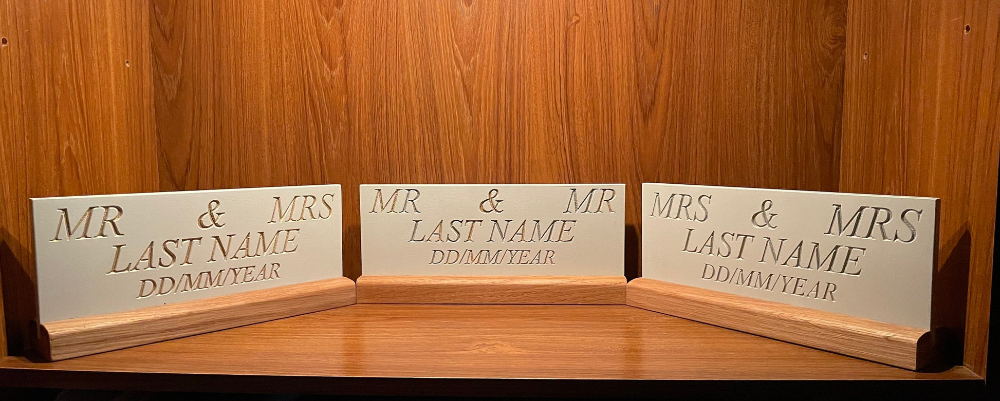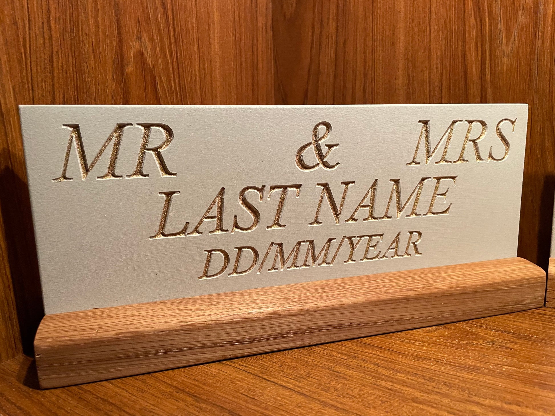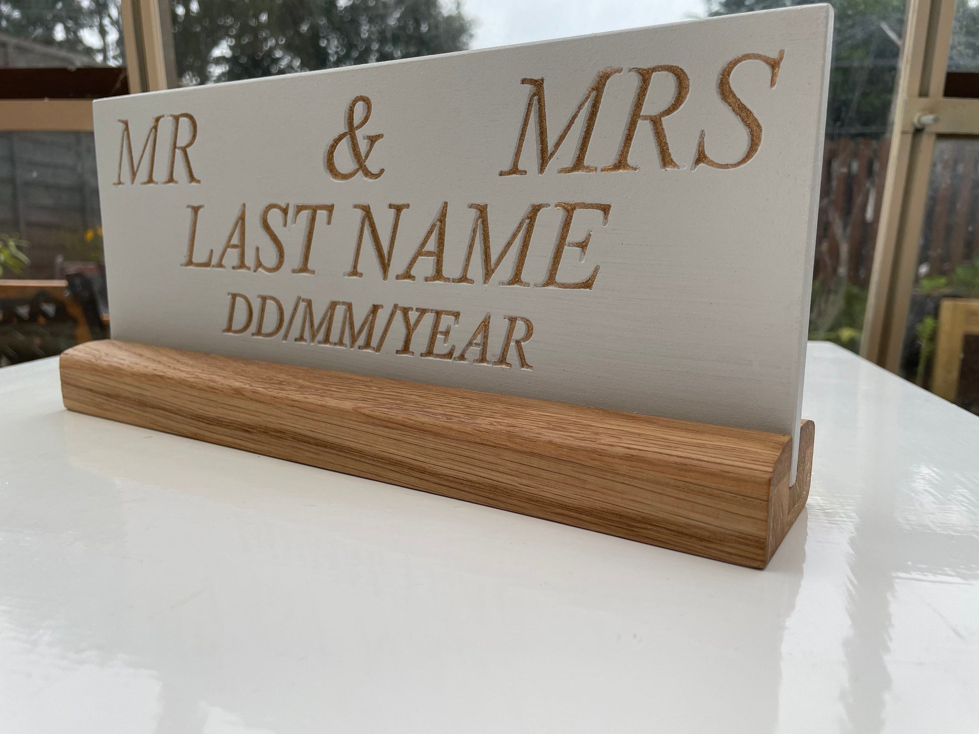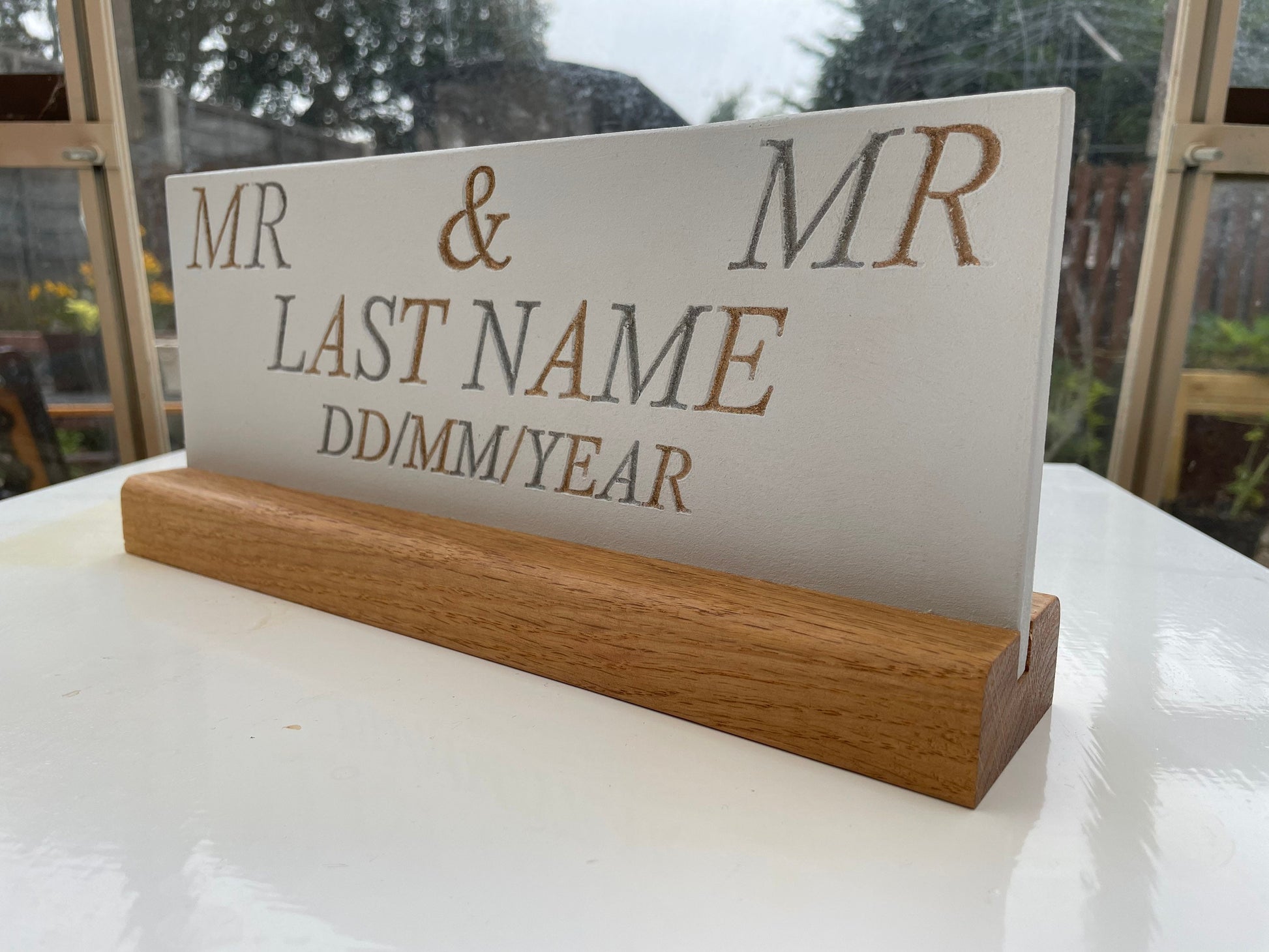 Unique wedding freestanding sign. Selection of Mr & Mrs, Mr & Mr, Mrs & Mrs. and also Mx with normal term or with Mx as well. we try and cater for everyone if you would like something else then the terms which not listed please let us know.