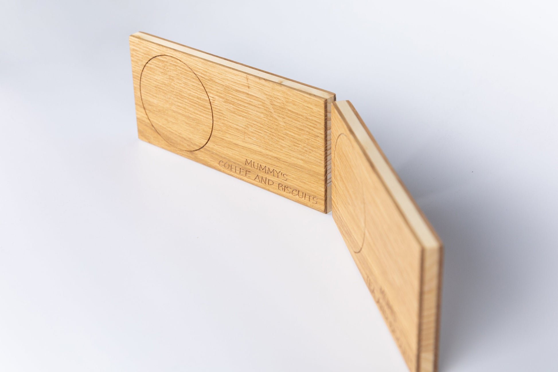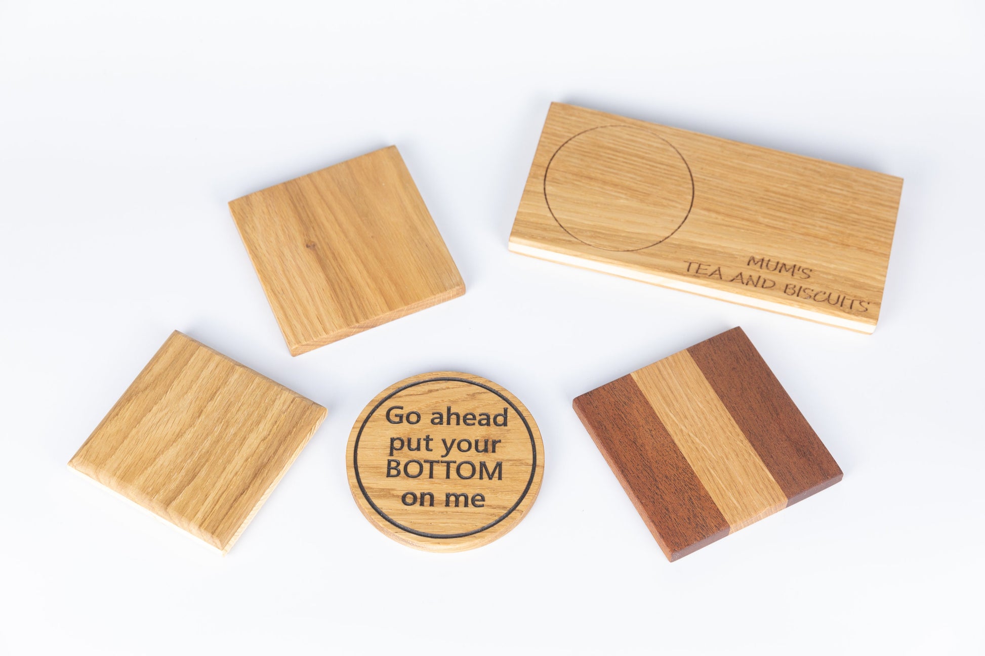 4) Tea and Biscuit Coaster made same Oak with Pine, Personalise or left unengraved Not a set just 1 Coaster